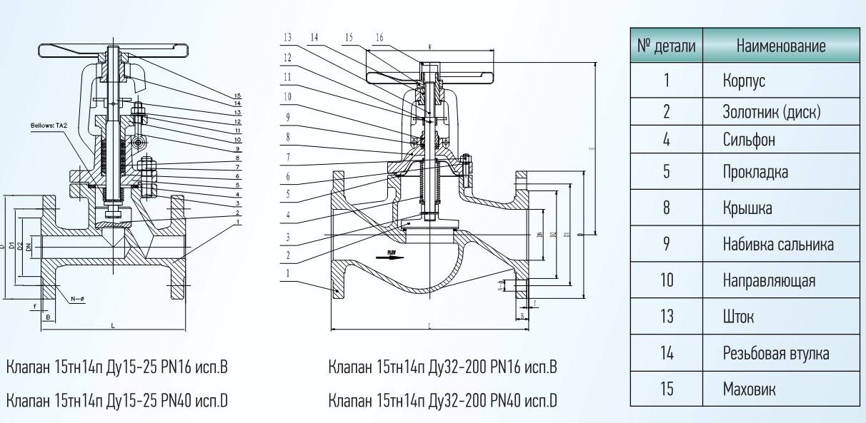 Обозначение документации, по которой выпускается продукция ТУ 3742-001-31996507-2010 Таблица фигур 15тн14п Давление номинальное PN, МПА (кгс/см2) 1,6 (16); 4,0 (40) Класс герметичности по ГОСТ 9544-2015 класс «А» Направление подачи рабочей среды под золотник, на золотник DN 150-200 Тип управления ручное (рукоятка или маховик) Тип присоединения фланцевое Температура рабочей среды до +200 (уплотнение фторопласт) Установочное положение любое Рабочая среда Применяется для сред, по отношению к которым применяемые материалы коррозионностойки. -